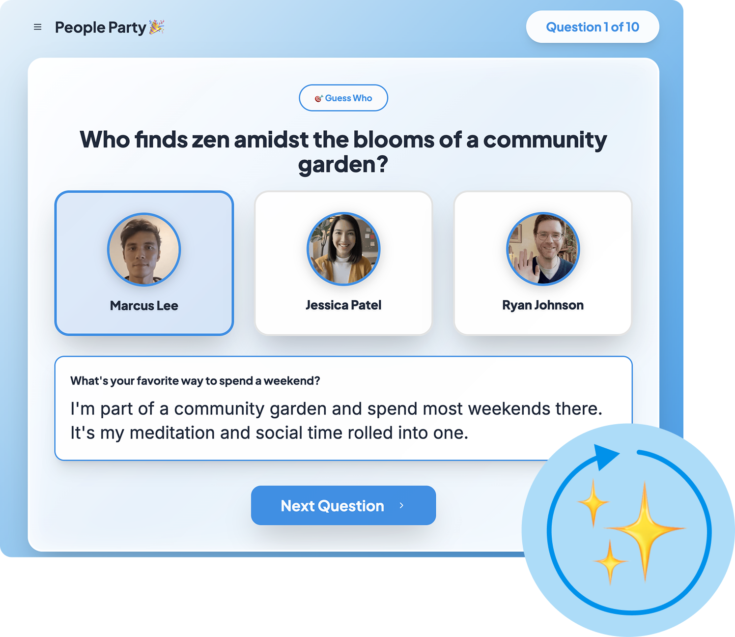 Welcomepage turns your team’s pages into instant get-to-know-you games — just press Start and share your screen.